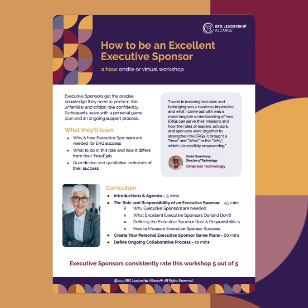 Open and available to all organizations and individuals - no ELA membership required. Sponsors may train in a live-led, virtual setting alongside other organizations as part of ERG University or contact us for a custom quote for private training onsite or online.